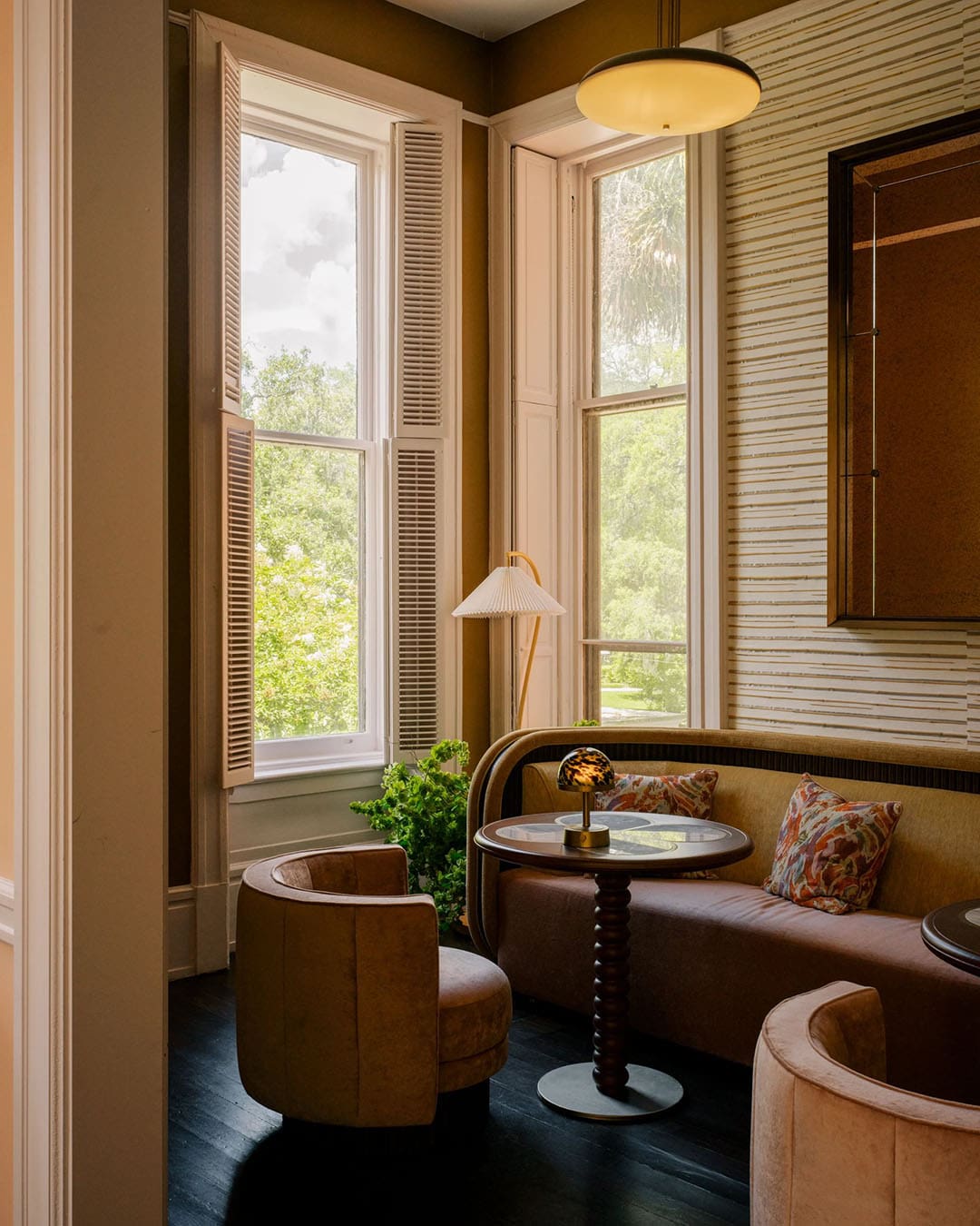 Occupying a turreted 19th century mansion, Bardo is an art-filled hotel and members’ club on the edge of leafy Forsyth Park. Social spaces unfold in soft sherbert tones, with a mural by local artist Juliana Lupacchino across one wall. Far more than a hotel amenity, the club is a living room for the city’s well-heeled creatives and travellers from across the US. Savannah regulars and weekend visitors mingle in the Green Room lobby bar, segueing from coffee to evening drinks.